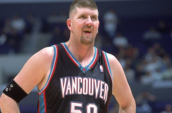 布莱恩・特里弗斯是灰熊队史“自产自养”的第一位乐透秀,1995年第6顺位被选中的他,曾被寄予厚望成为球队内线核心。他身材魁梧、力量十足,外号“庄稼汉”,新秀赛季就交出13.3分7.4篮板,二年级升至16.02分8.1篮板,三年级稳定在16.3分7.6篮板——这样的表现,让灰熊在1998年毫不犹豫地为他开出6年6500万美元的大合同(类比当时3000万美元的工资帽,相当于如今的年薪3000万级别)。