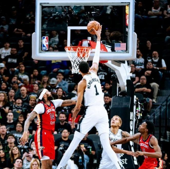 文班亚马还创造了NBA的历史纪录,他在88场比赛中已经7次单场至少投中5记三分球并送出至少3次盖帽,这充分展现了他在攻防两端的全面影响力。
